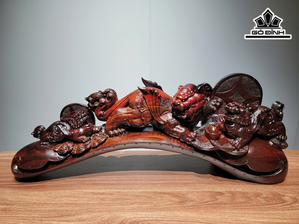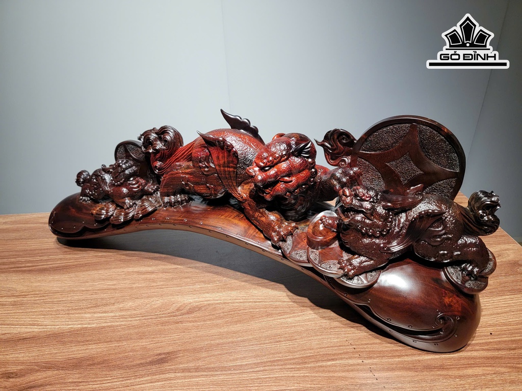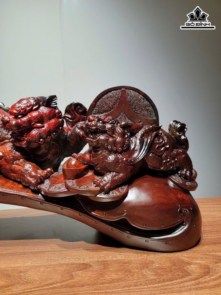 Cầu Tỳ Hưu Phong Thủy Gỗ Trắc Cao 27 Ngang 70 Sâu 17 (cm)