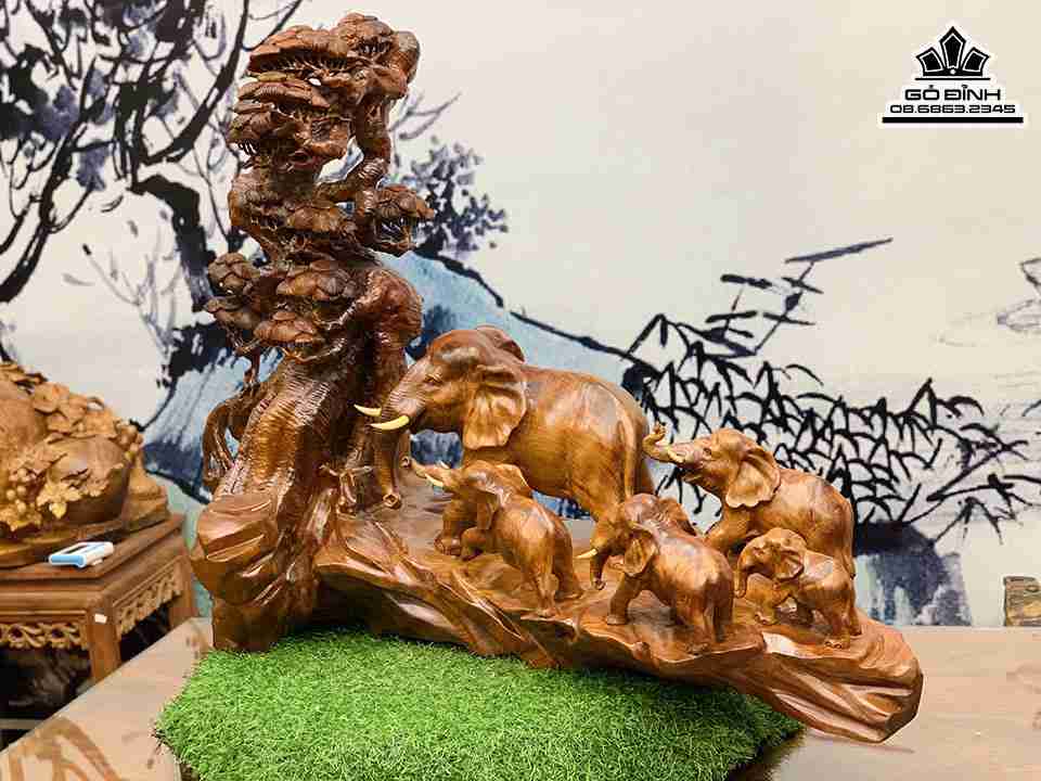 Cầu Voi Gỗ Hương Việt Cao 73 Ngang 96 Sâu 35 (cm)