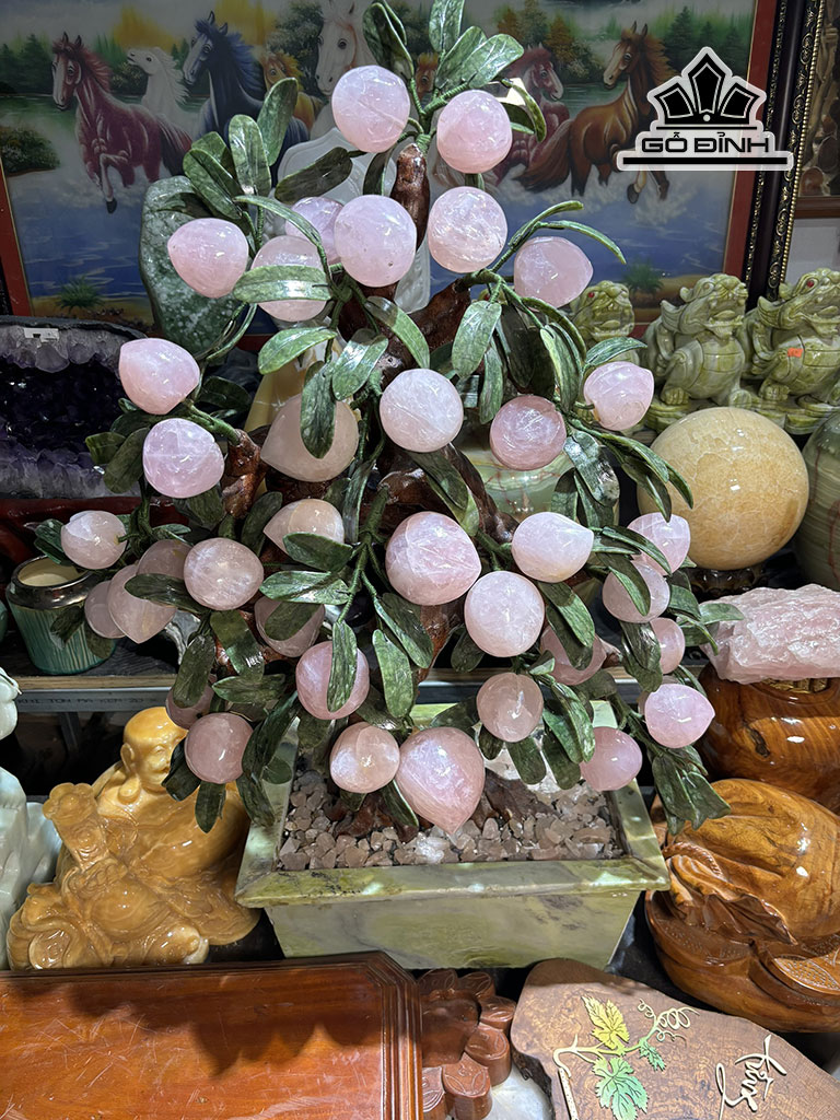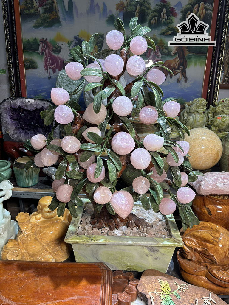 Cây Đào 38 Quả Đá Thạch Anh Hồng Cao 93 (cm)