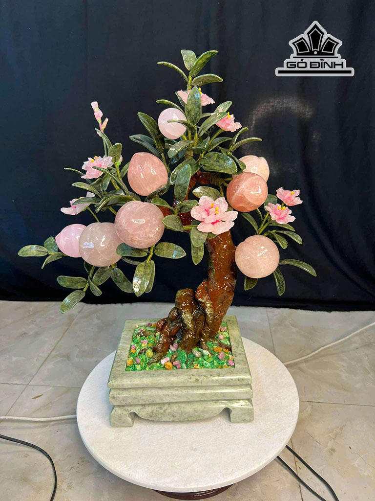 Cây Đào 8 Quả Đá Thạch Anh Hồng