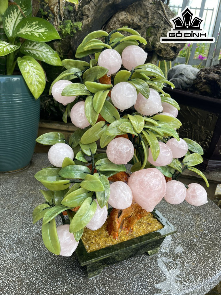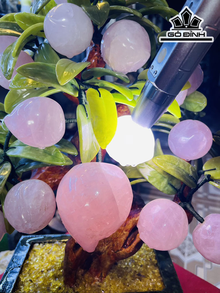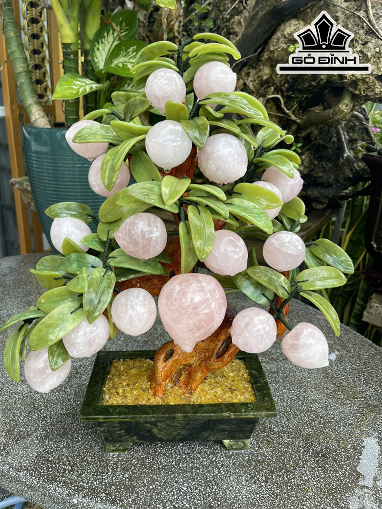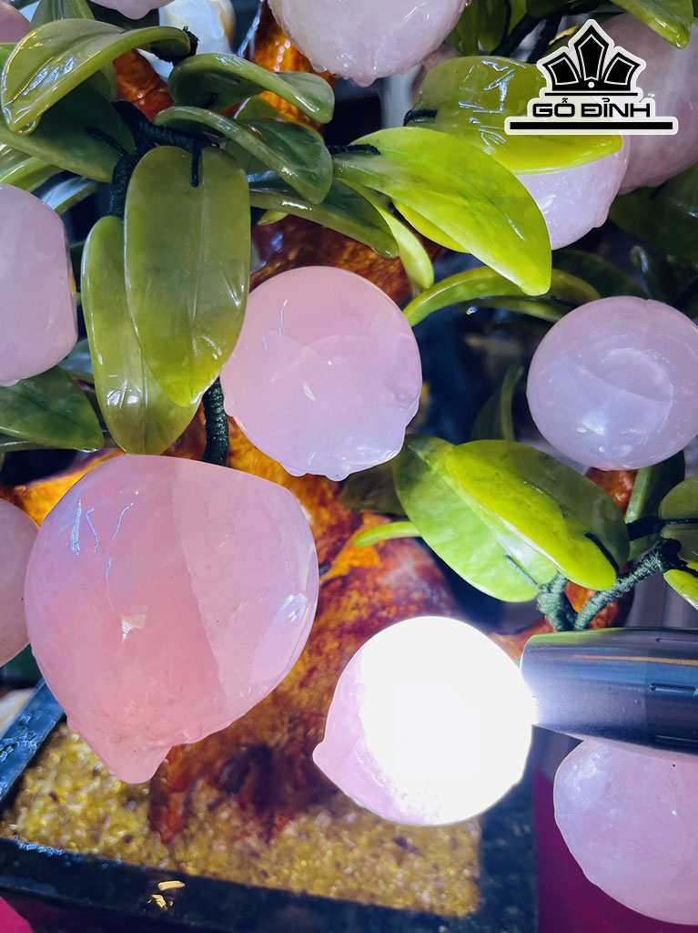 Cây Đào Trường Thọ 18 Quả Đá Thạch Anh Hồng Cao 50 Ngang 40 (cm) 8,8kg