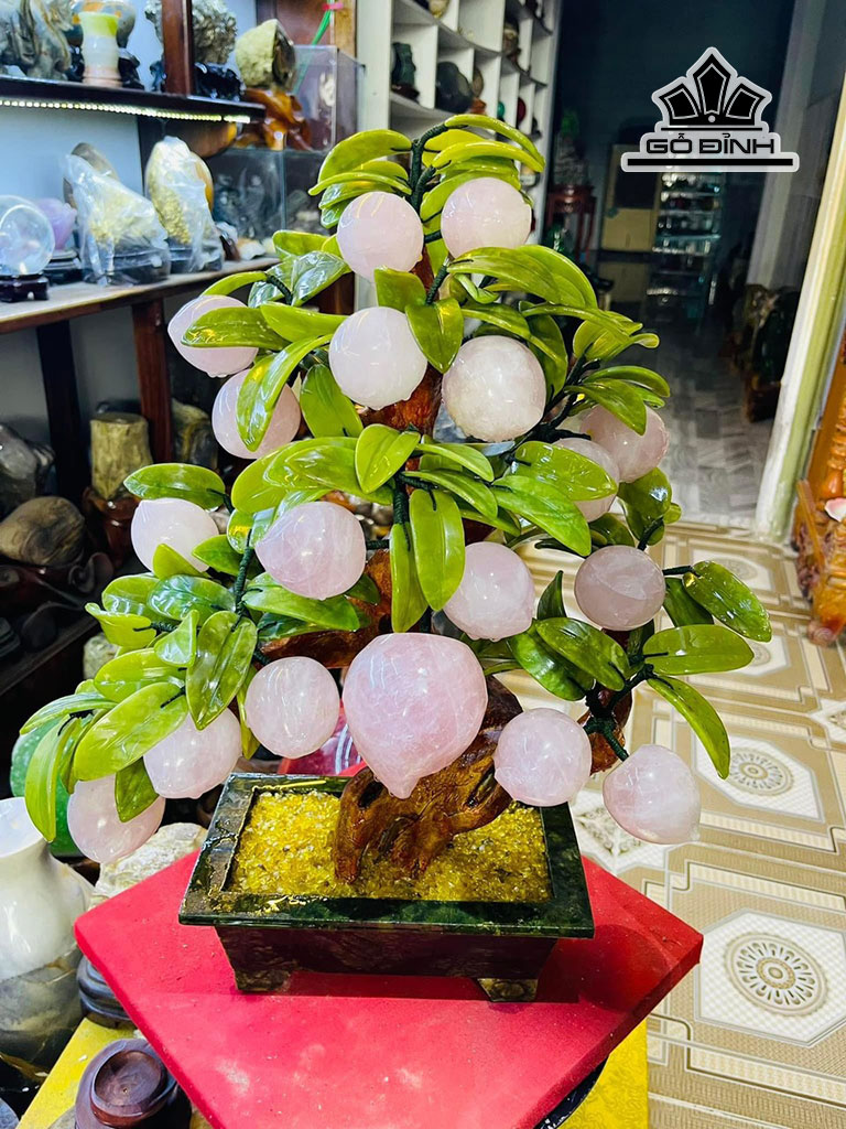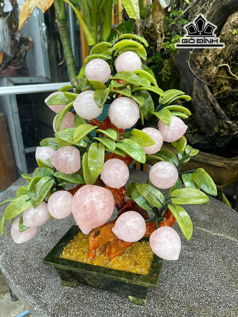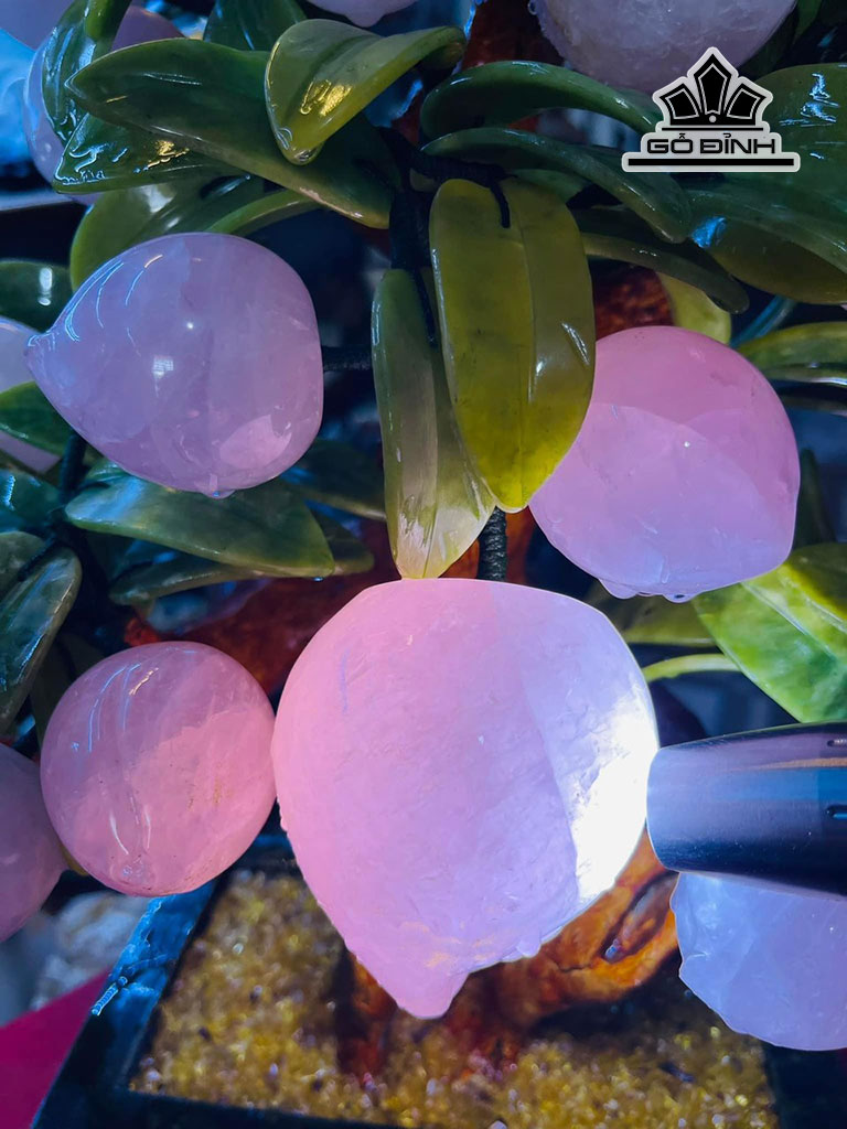 Cây Đào Trường Thọ 18 Quả Đá Thạch Anh Hồng Cao 50 Ngang 40 (cm) 8,8kg