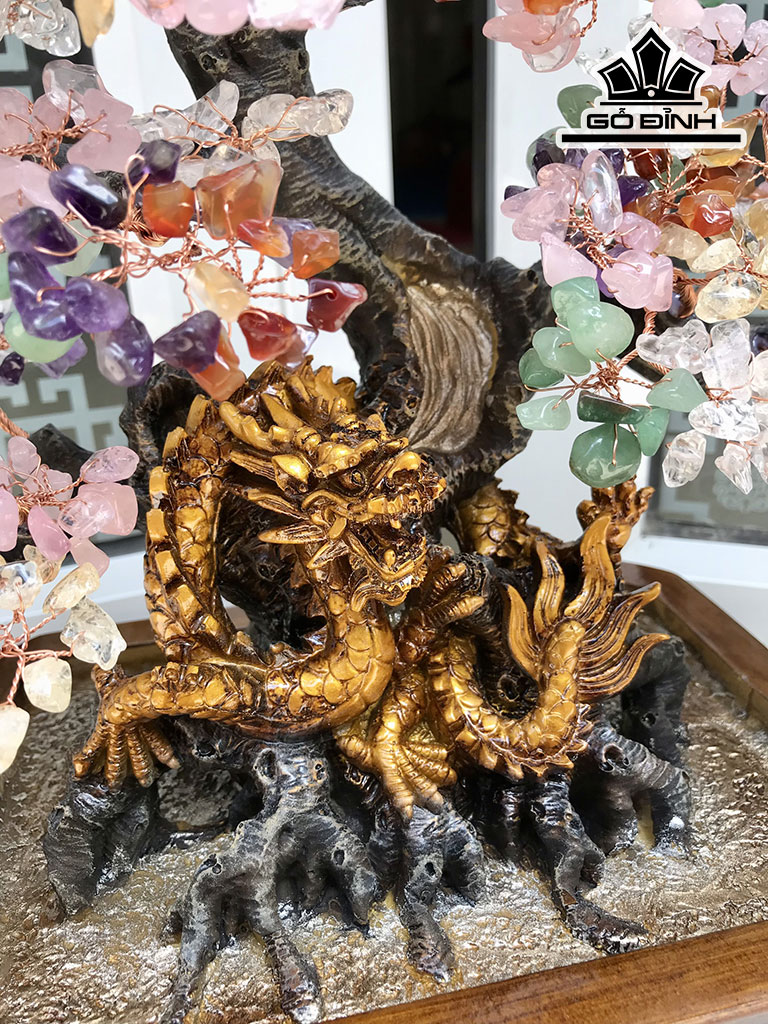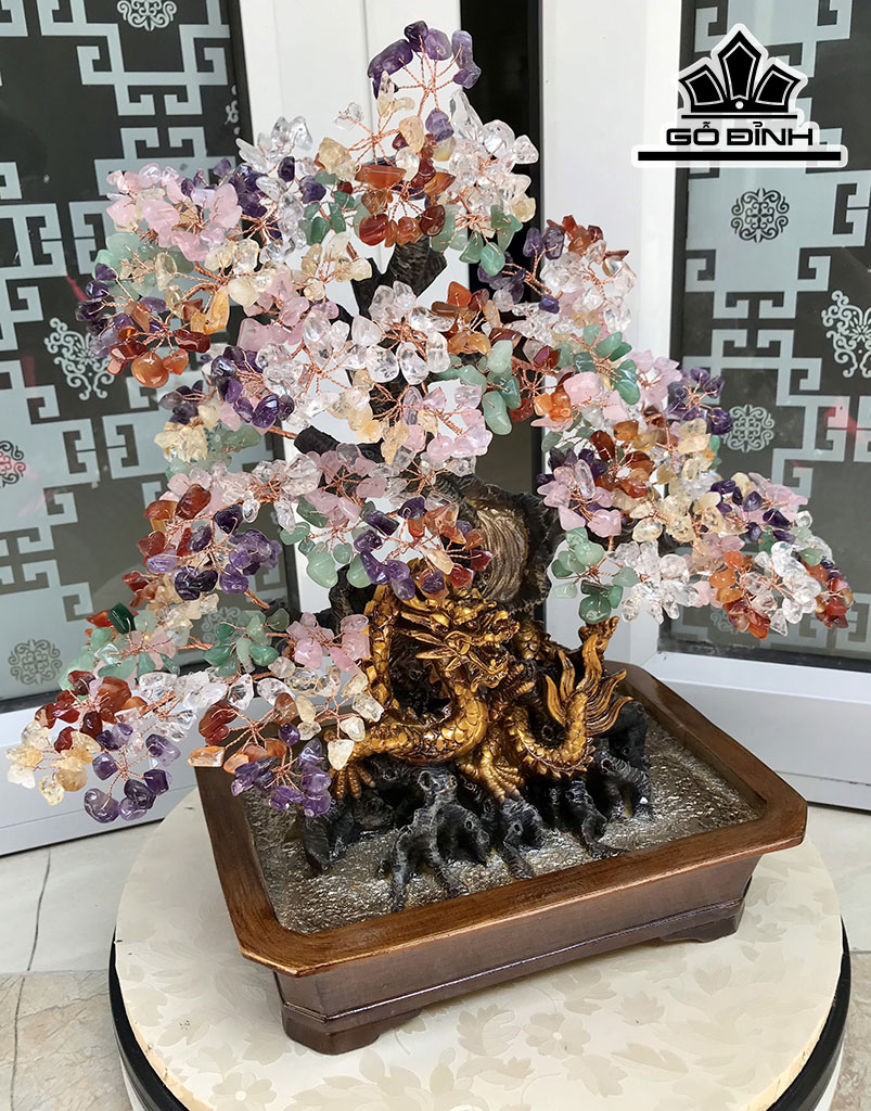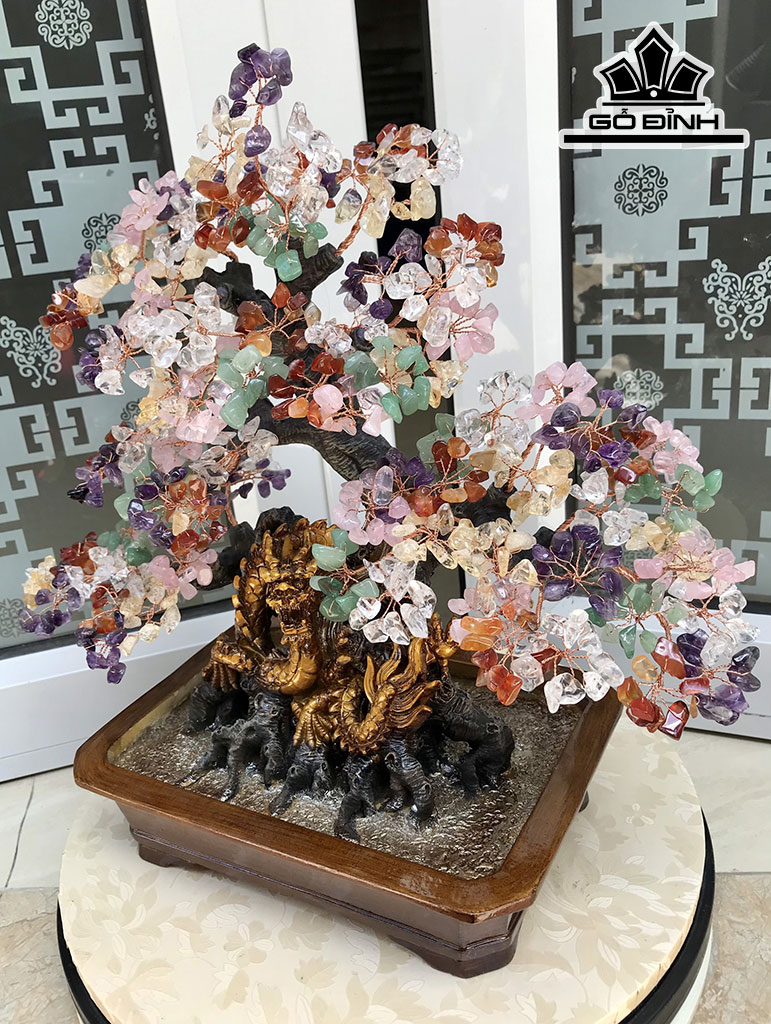Cây Hưng Long Đá Thạch Anh Ngũ Sắc Cao 39,5 Ngang 39,5 Sâu 18 (cm) 2,6kg