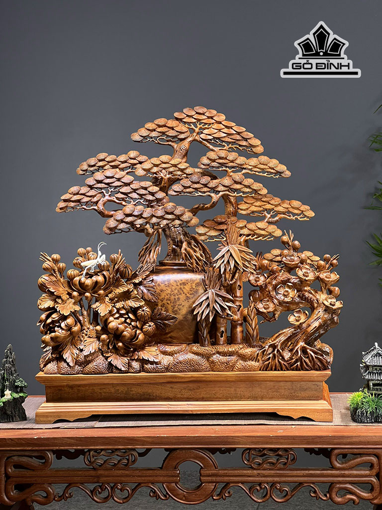Cây Tùng Bốn Mùa Phú Quý Gỗ Nu Ngọc Am Cao Cả Kỷ 69 Riêng Kỷ 10 Ngang 65 Sâu 25 (cm)