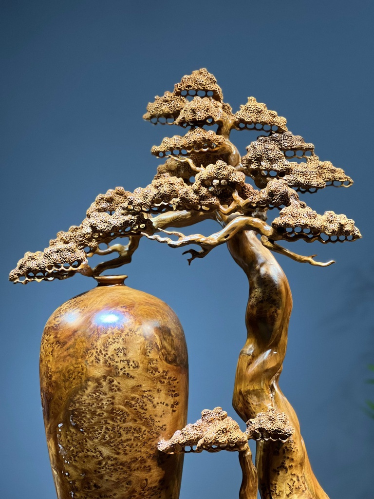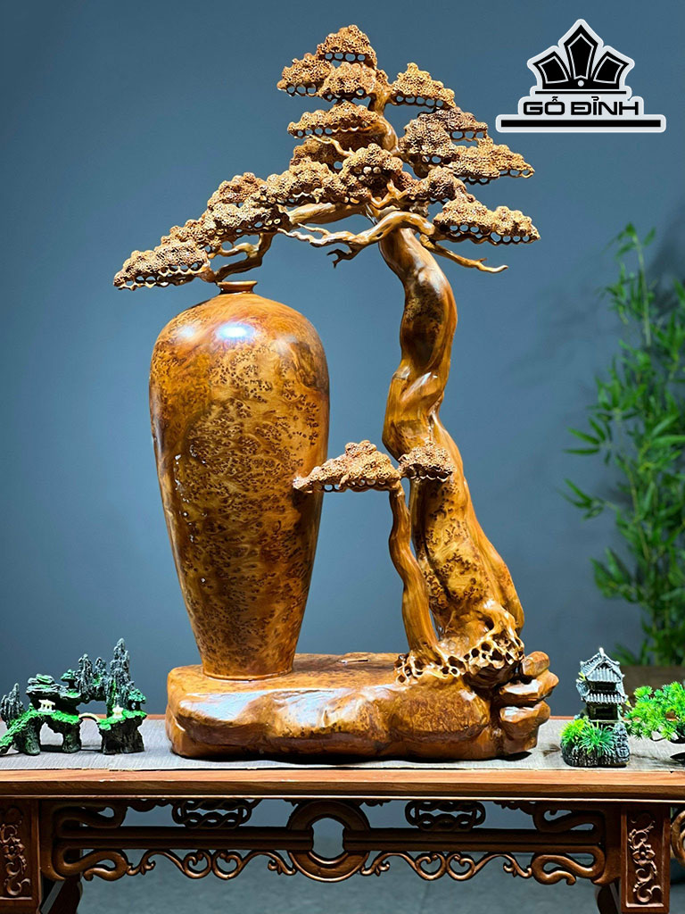 Cây Tùng Phú Quý Gỗ Nu Ngọc Am Cao 106 Ngang 66 Sâu 33 Bình Cao 60 Đường Kính 28 (cm)