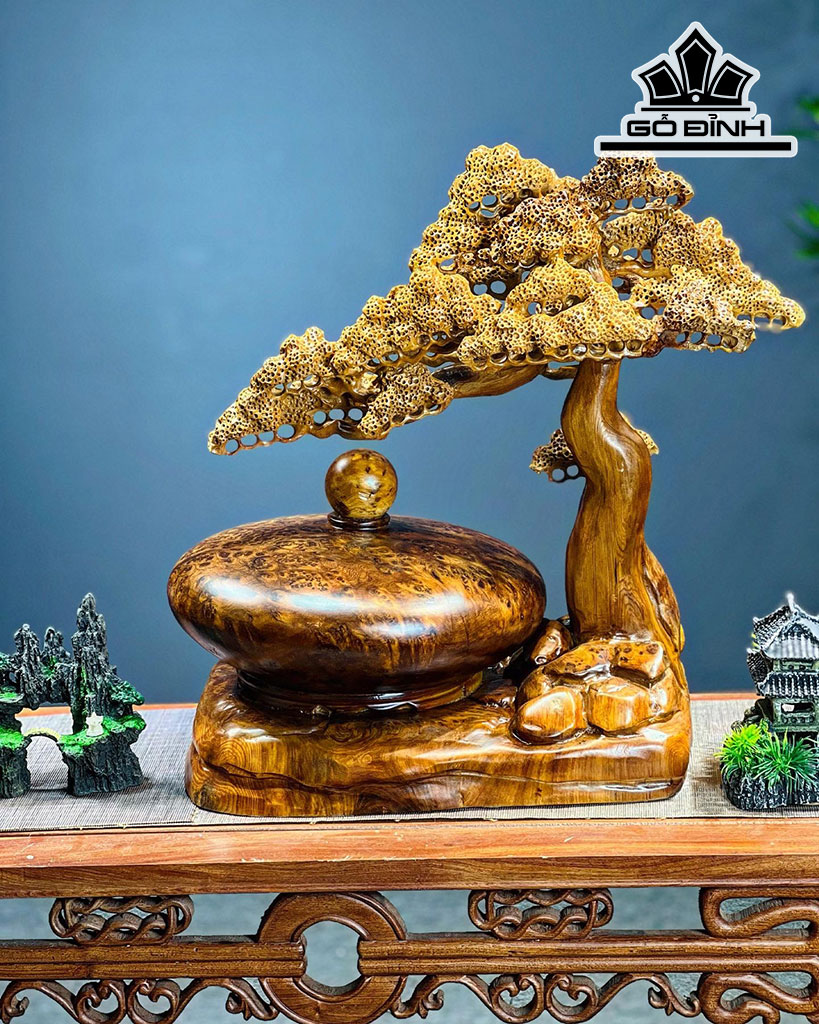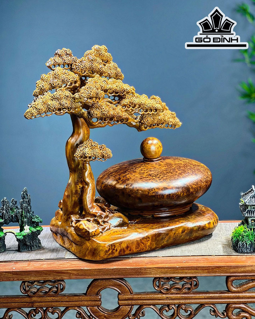 Cây Tùng Phú Quý Gỗ Nu Ngọc Am Cao 54 Ngang 55 Sâu 33 Bình Đường Kính 33(cm)