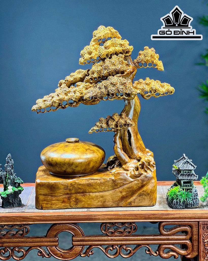 Cây Tùng Phú Quý Gỗ Nu Xá Xị Cao 57 Ngang 46 Sâu 23 Bình Cao 11 Đường Kính 21 (cm)