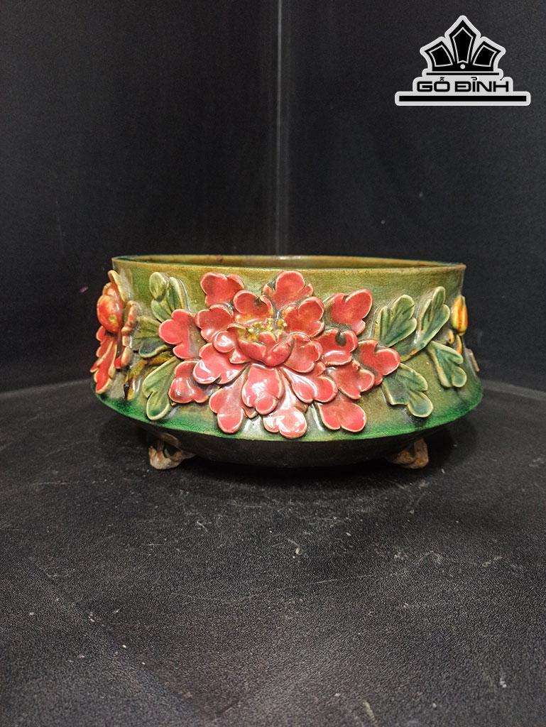 Chậu Hoa Tròn Gốm Phật Sơn Cao 13,5 Miệng 24 Đường Kính 21 (cm)