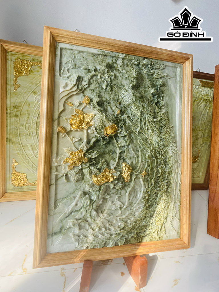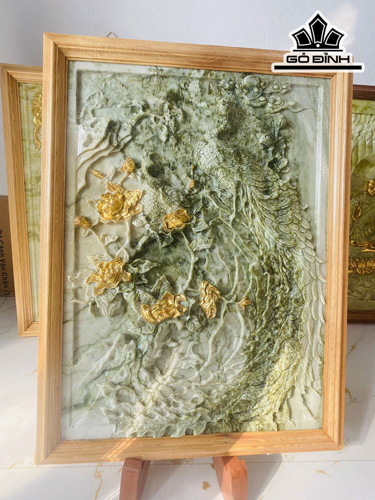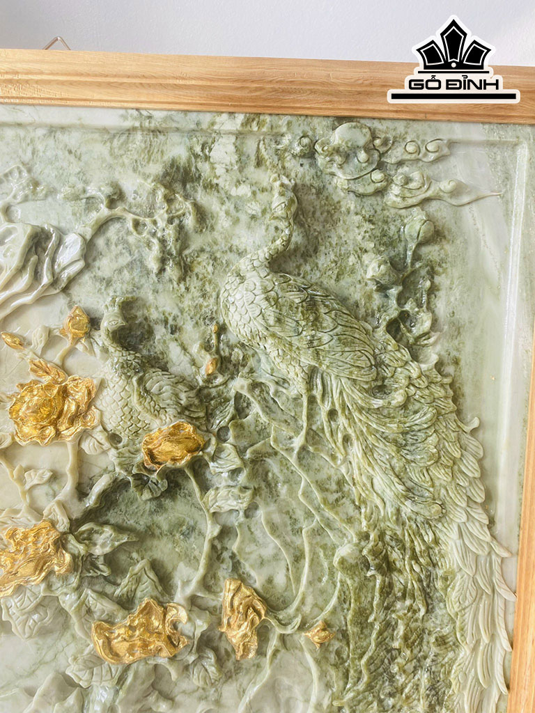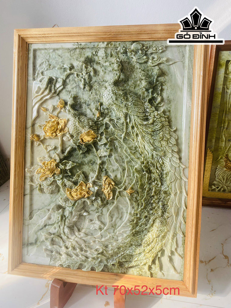 Chim Công Dát Vàng Đá Serpentine Cao 70 Ngang 52 Sâu 5 (cm)