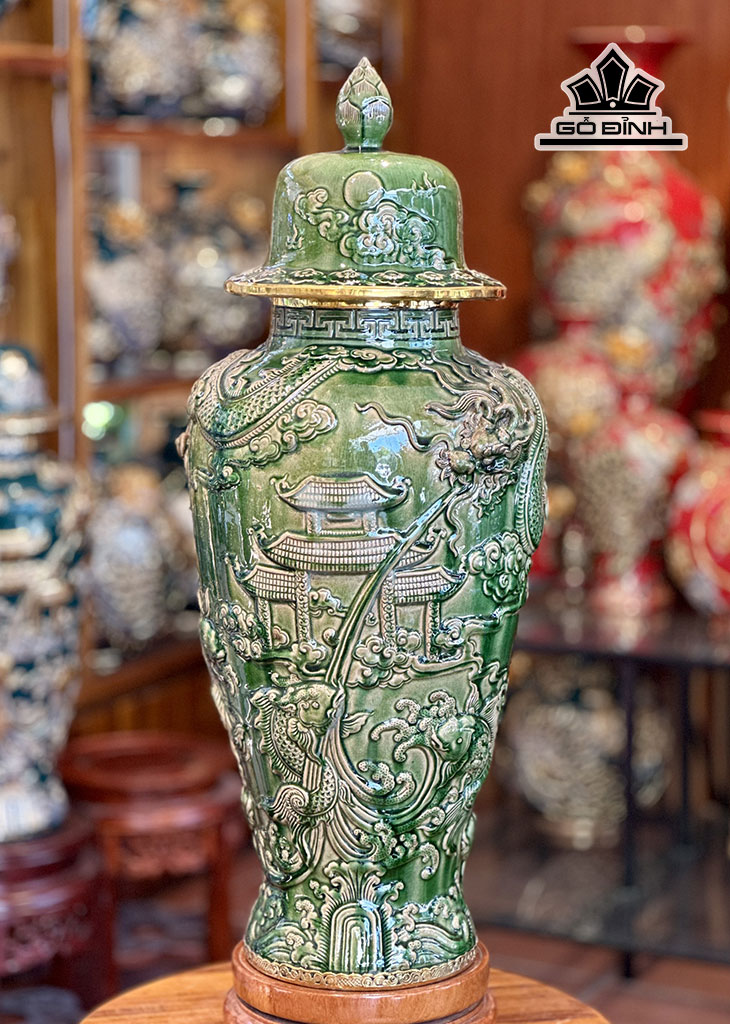 Chóe Phong Thủy Cá Chép Vượt Vũ Môn Hóa Rồng Gốm Bát Tràng Cao 80 (cm)