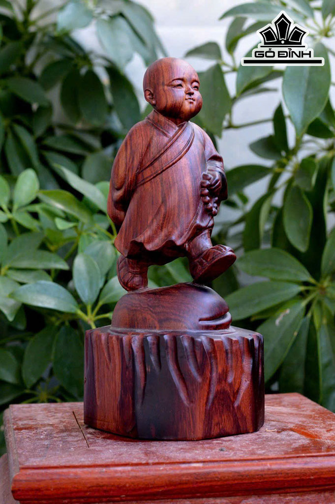 Chú Tiểu Thong Dong Gỗ Cẩm Cao 20 Ngang 8 Sâu 8 (cm)