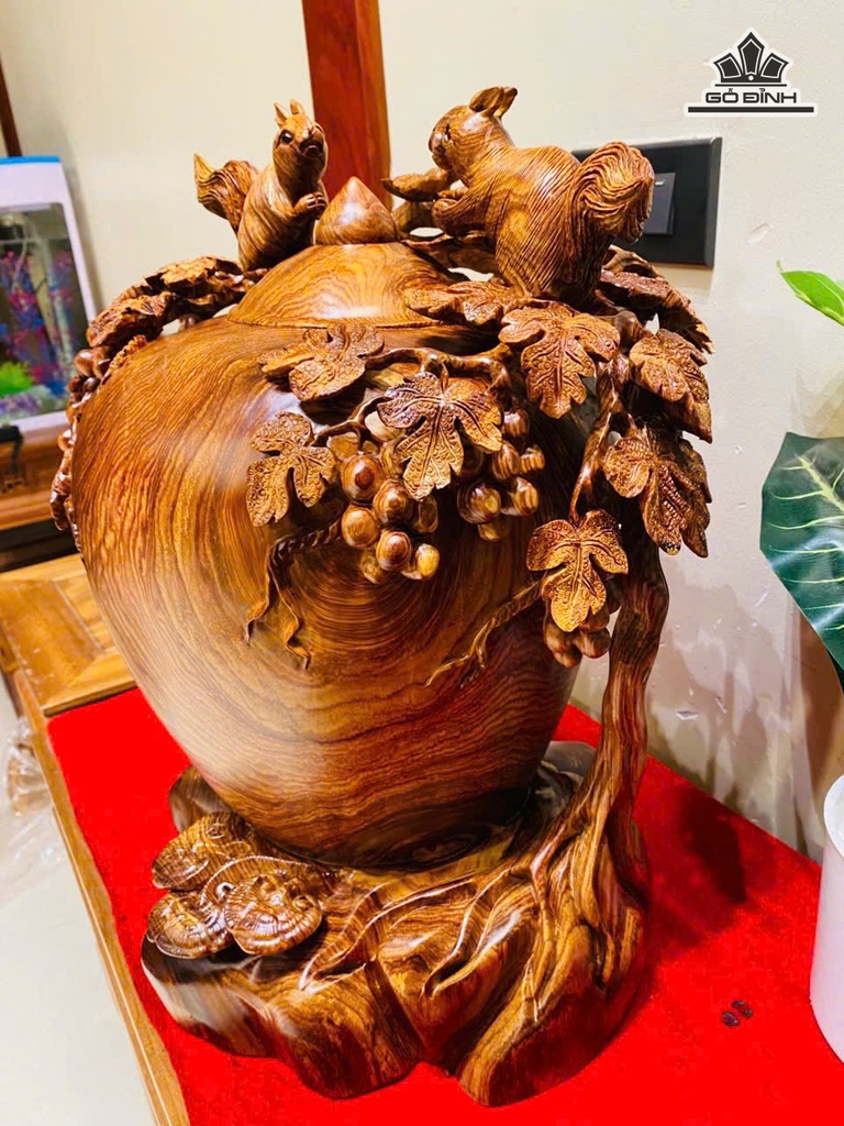 Chum Phú Quý Nho Sóc Gỗ Cẩm Cao 45 Ngang 36 Sâu 33 (cm)
