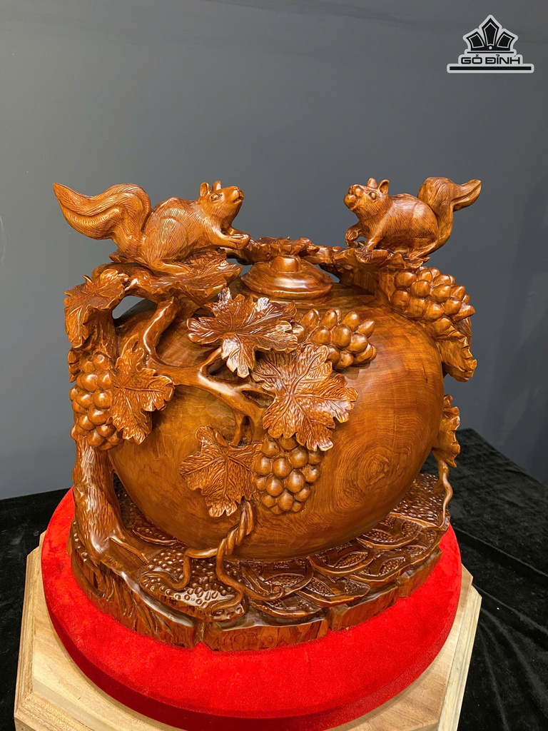 Chum Phú Quý Nho Sóc Gỗ Ngọc Am Cao 42 Ngang 43 Sâu 36 (cm) - Đường Kính 32