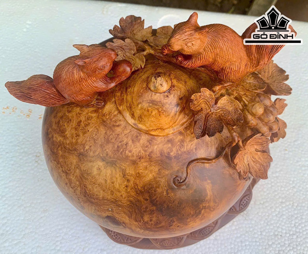 Chum Phú Quý Nho Sóc Gỗ Nu Hương Cao 23 Ngang 24 Sâu 20 (cm)