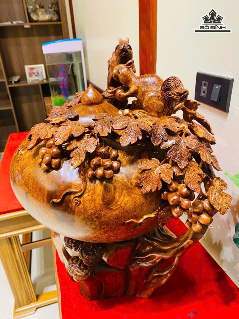 Chum Phú Quý Nho Sóc Gỗ Nu Hương Cao 50 Ngang 40 Sâu 35 (cm)