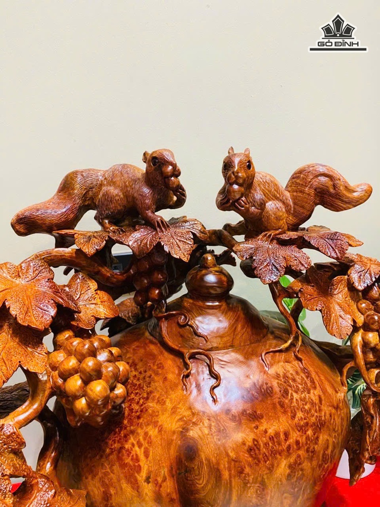 Chum Phú Quý Nho Sóc Gỗ Nu Hương Cao 60 Ngang 55 Sâu 42 (cm)