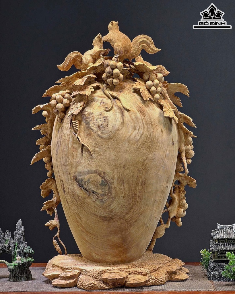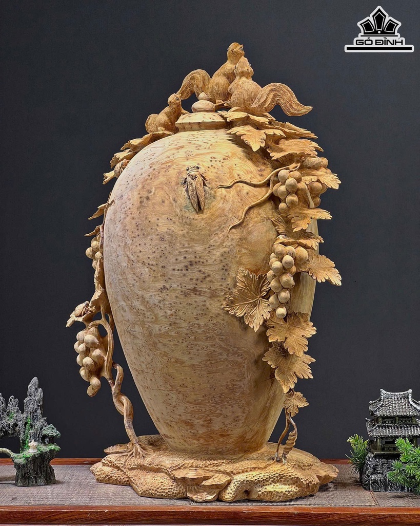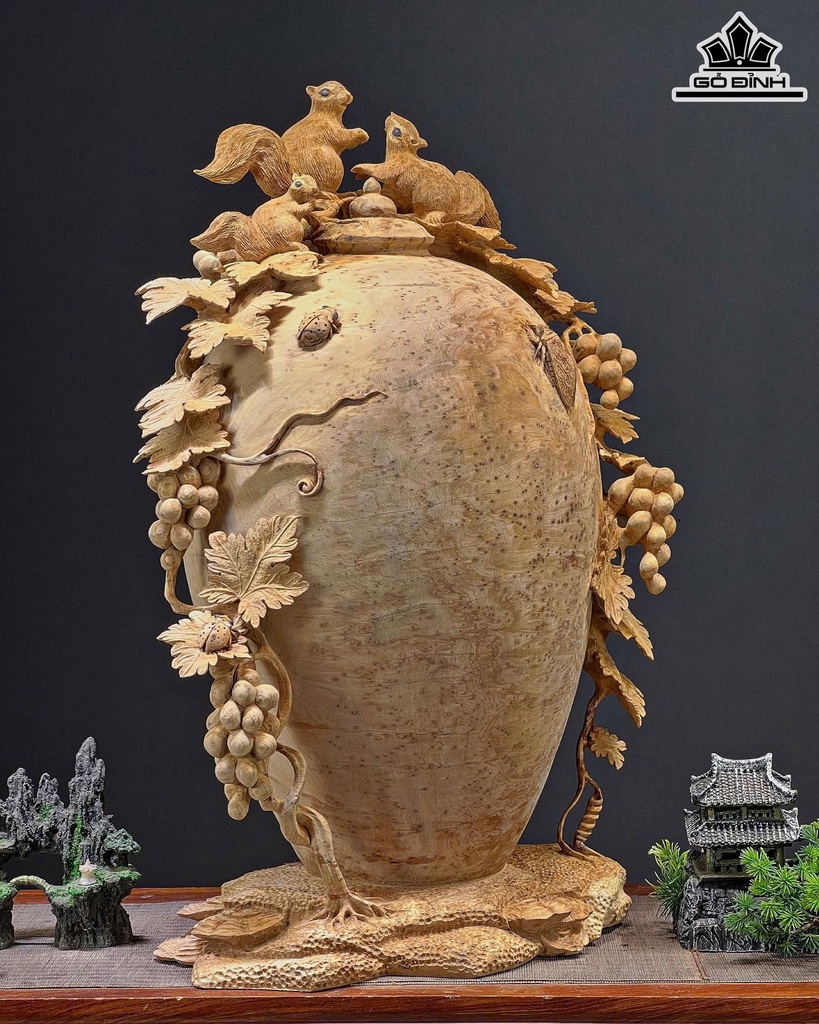 Chum Phú Quý Nho Sóc Gỗ Nu Ngọc Am Cao 71 Ngang 46 Sâu 33 (cm)