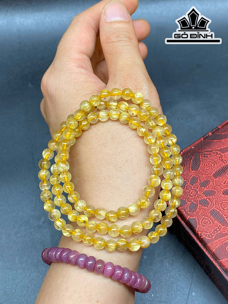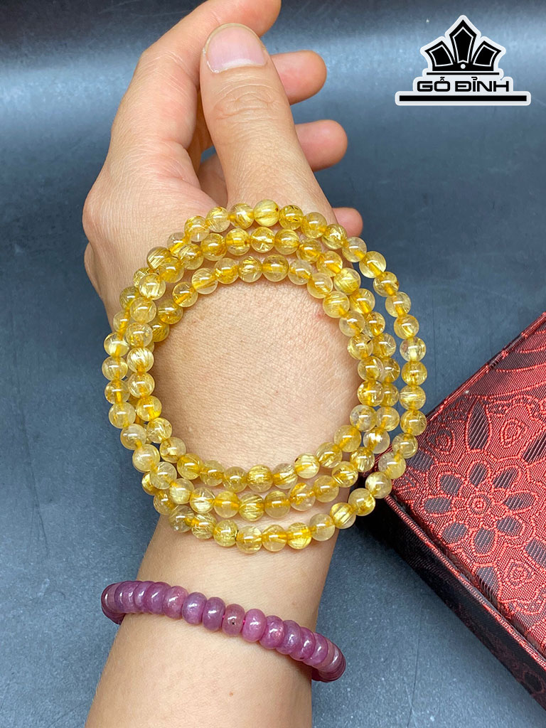 Chuỗi 108 Hạt Đá Thạch Anh Tóc Vàng Đường Kính 5,5 - 5,8 (mm)