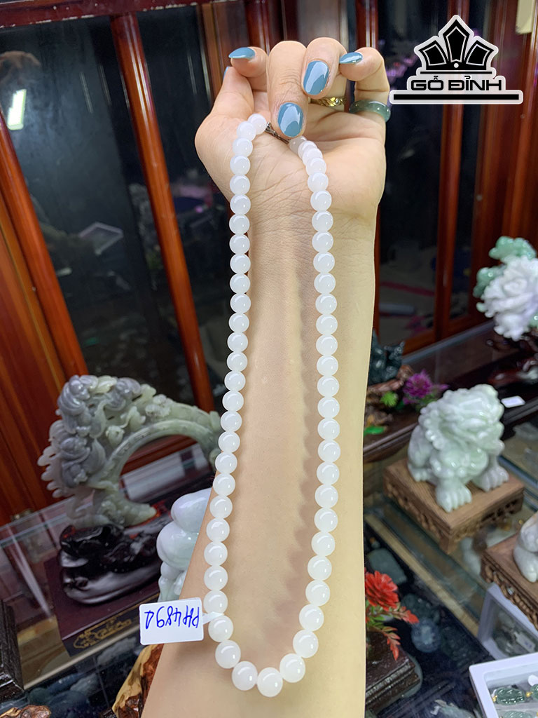 Chuỗi Đá Bạch Ngọc Hòa Điền Đường Kính Hạt 8 (mm) 44g