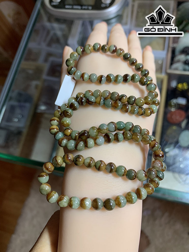 Chuỗi Quấn Huyết Uyên Ương 108 Hạt Đá Cẩm Thạch Đường Kính Hạt 6,6 (mm) 44,3g