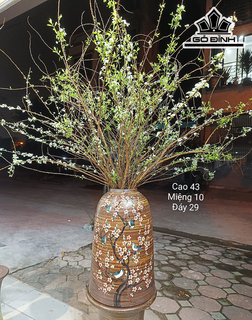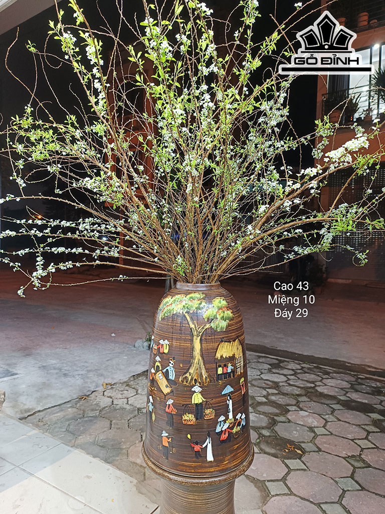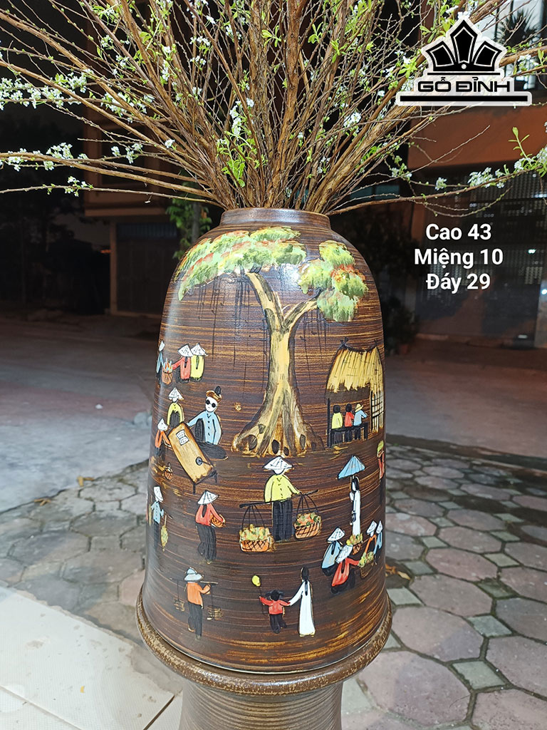 Chuông Đại Béo Vân Vẽ Gốm Bát Tràng Cao 43 Miệng 10 Đáy 29 (cm)