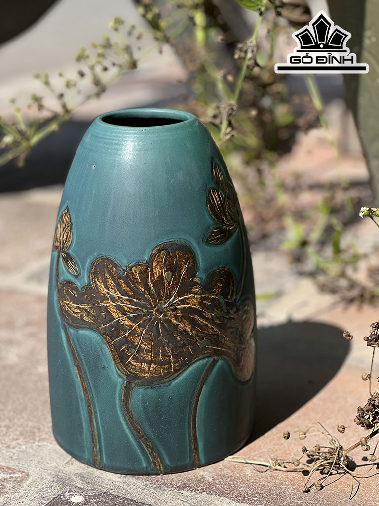 Chuông Vẽ Hoa Sen Gốm Bát Tràng Cao 26 Miệng 8 (cm)