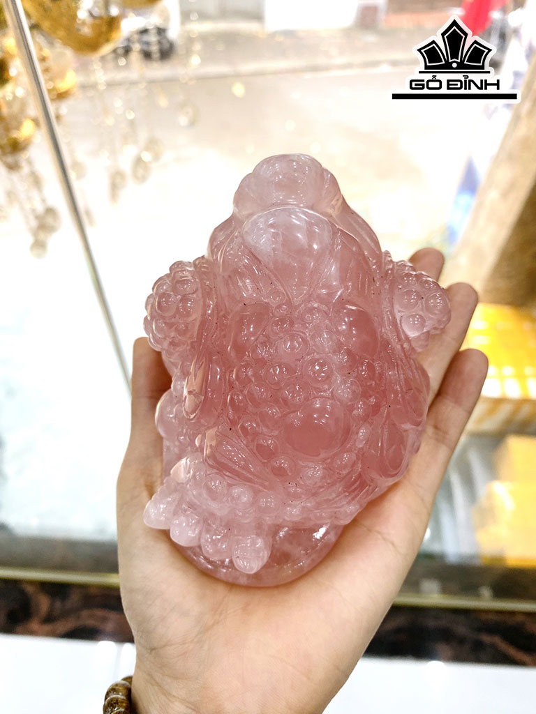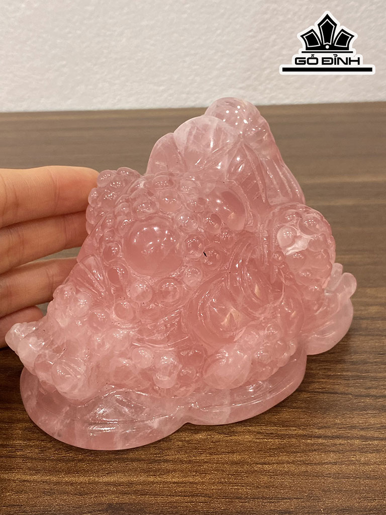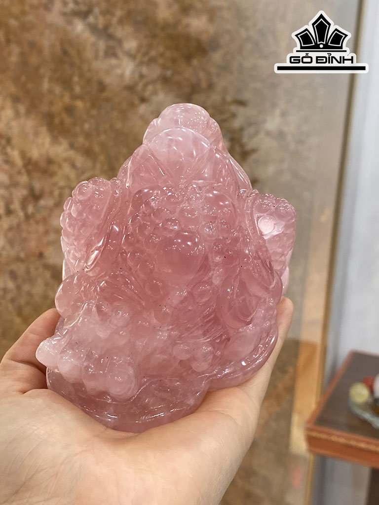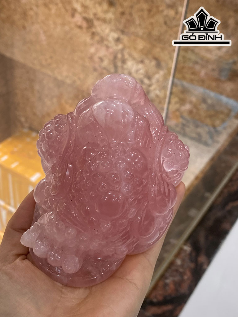Cóc Ba Chân Thiềm Thừ Tài Bảo Đá Thạch Anh Hồng 890g