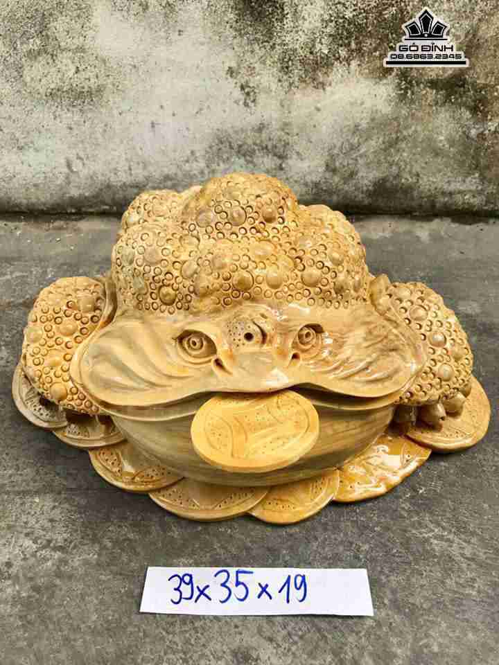 Cóc ngậm tiền gỗ nu nghiến ngang 39 sâu 35 dày 19 (cm)