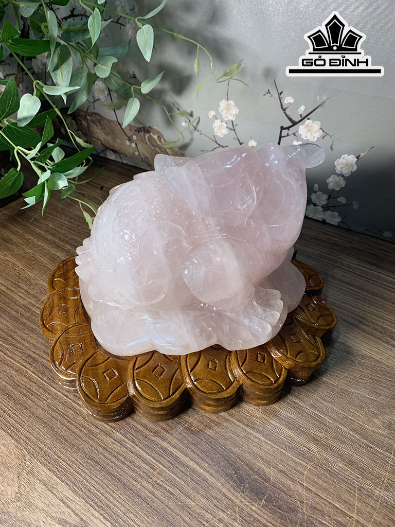 Cụ Cóc Ngậm Tiền Đá Thạch Anh Hồng Cao 15 Ngang 23 Sâu 25 (cm) 5,69kg
