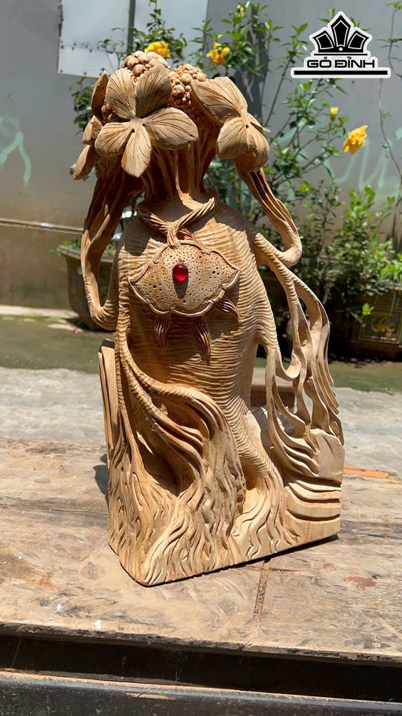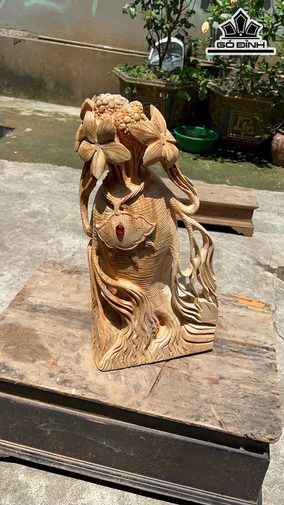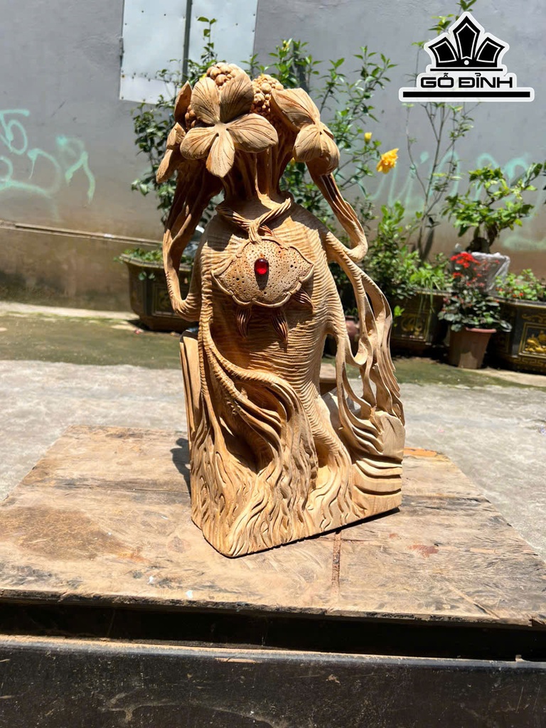 Củ Nhân Sâm Tài Lộc Gỗ Ngọc Am Cao 50 Ngang 28 Sâu 20 (cm)