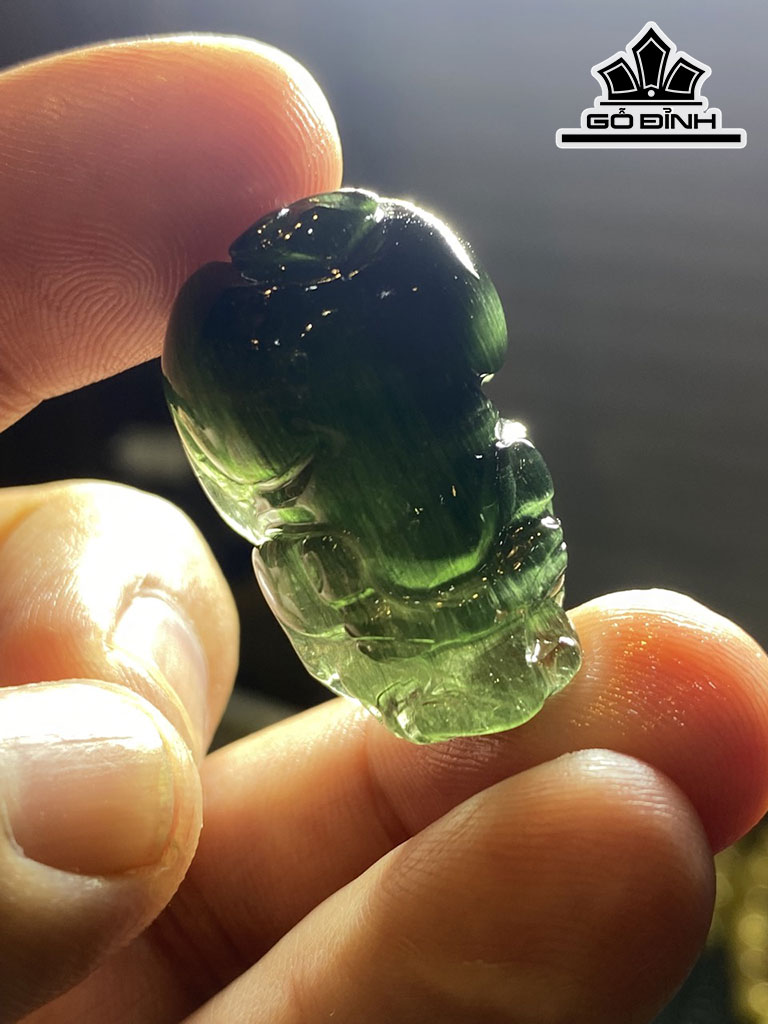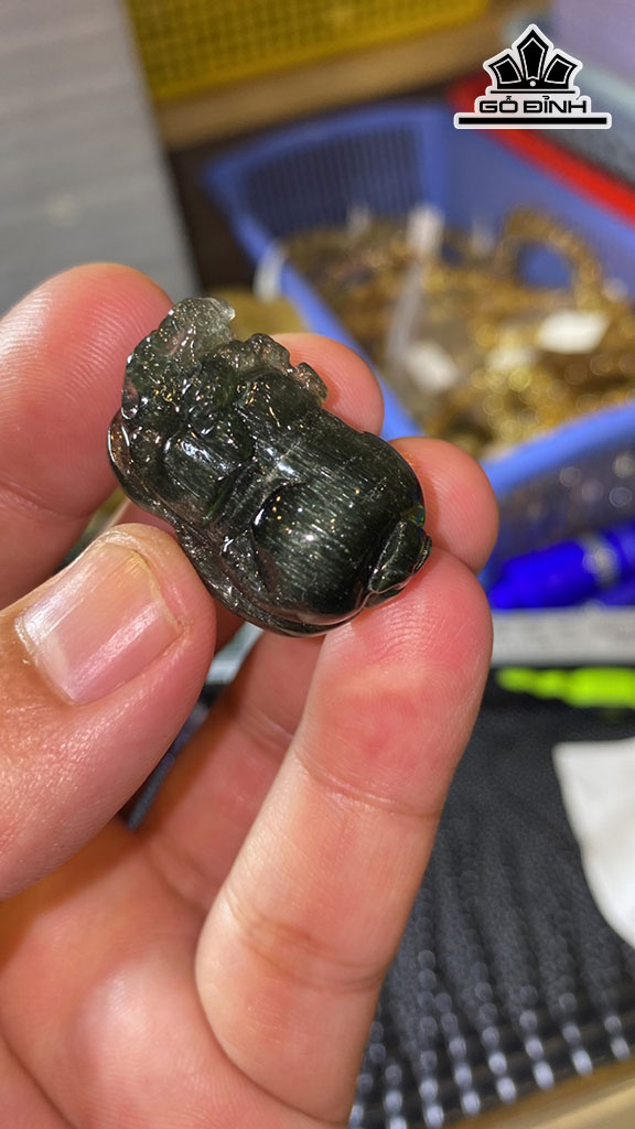 Cụ Tỳ Hưu Đá Thạch Anh Tóc Xanh Đồng Trục Mắt Mèo Cao 29 Ngang 18 Sâu 14,6 (mm) 13,3g