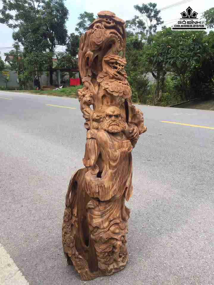 Đạt ma đứng gốc tùng gỗ ngọc am Hà Giang cao 1m30 rộng 37 sâu 30 (cm)