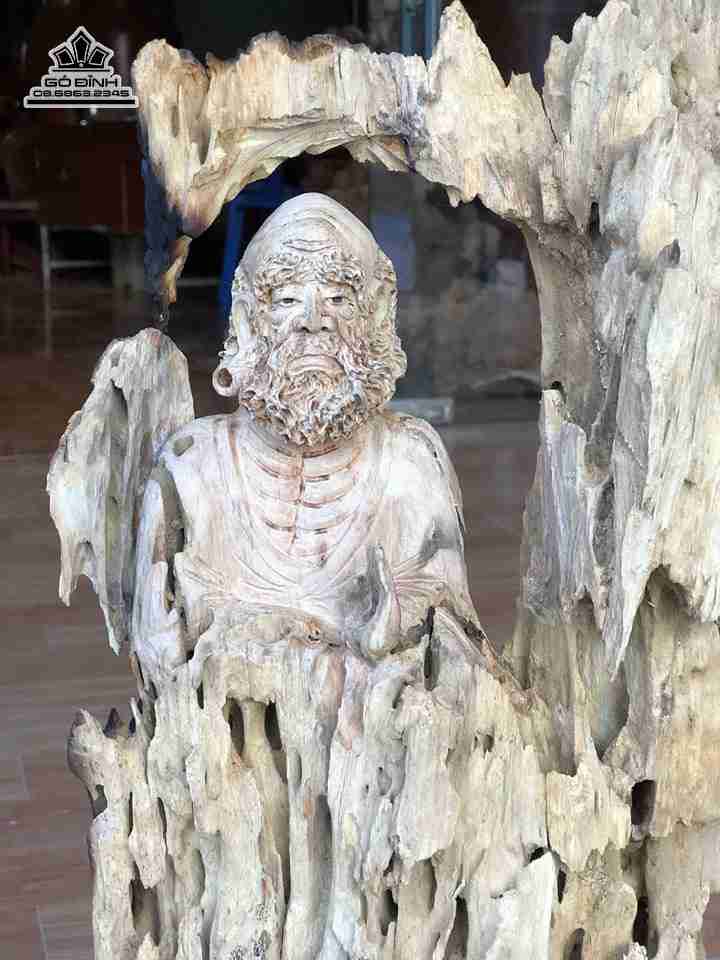 Đạt ma sư tổ gỗ lũa dổi cao 60 rộng 25 sâu 12 (cm)