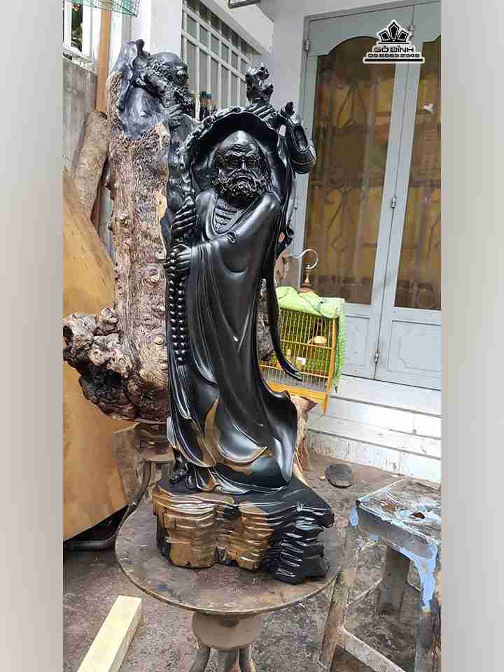 Đạt ma sư tổ gỗ mun sừng cao 80 rộng 32 dày 22 (cm)