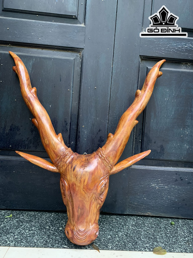 Đầu Tuần Lộc Phong Thủy Gỗ Sưa Cao 67 Ngang 57 Sâu 13 (cm)