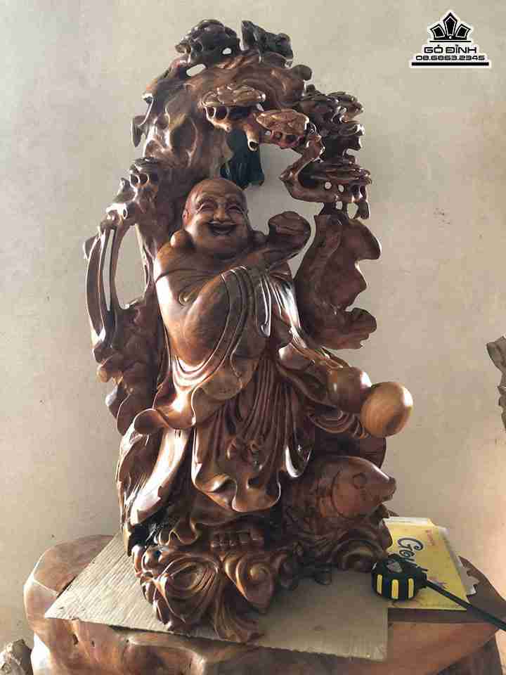 Di lặc chúc phúc đứng gốc tùng gỗ xá xị cao 90 rộng 47 dày 50 (cm)