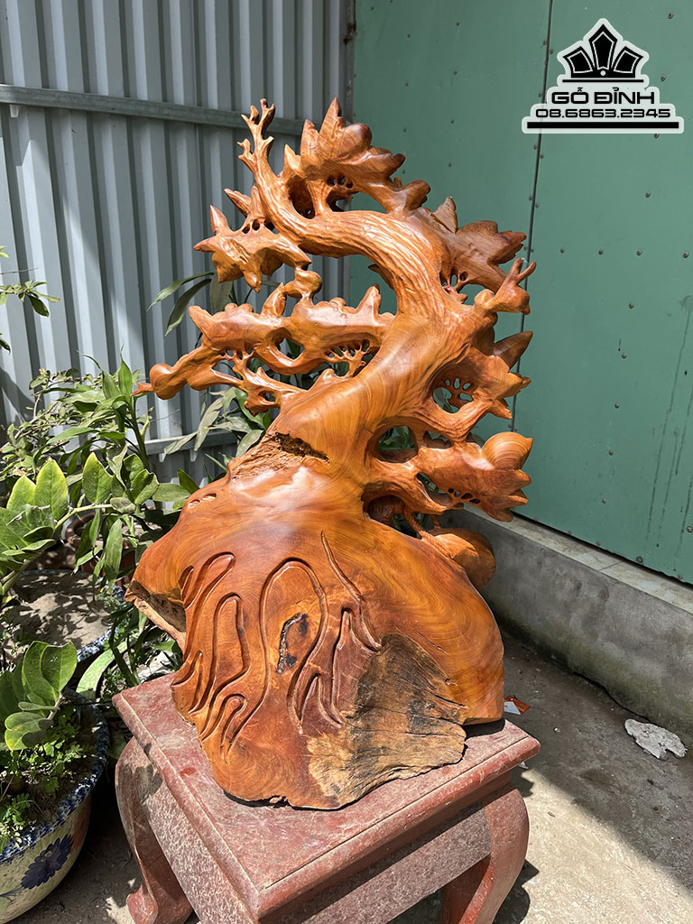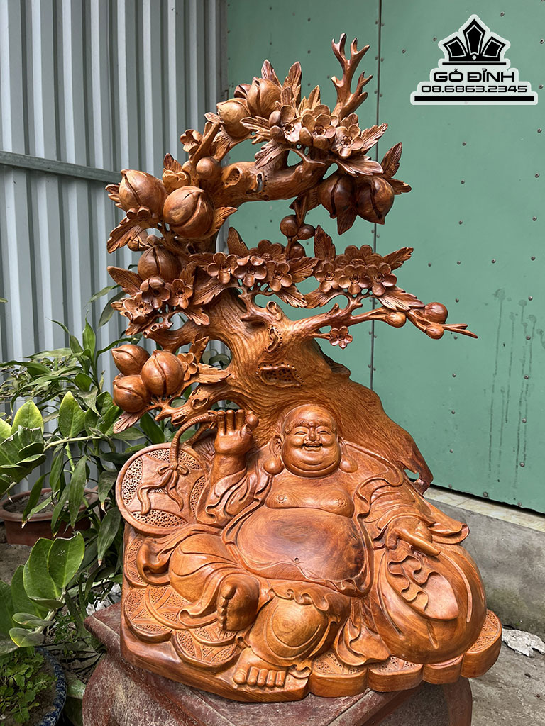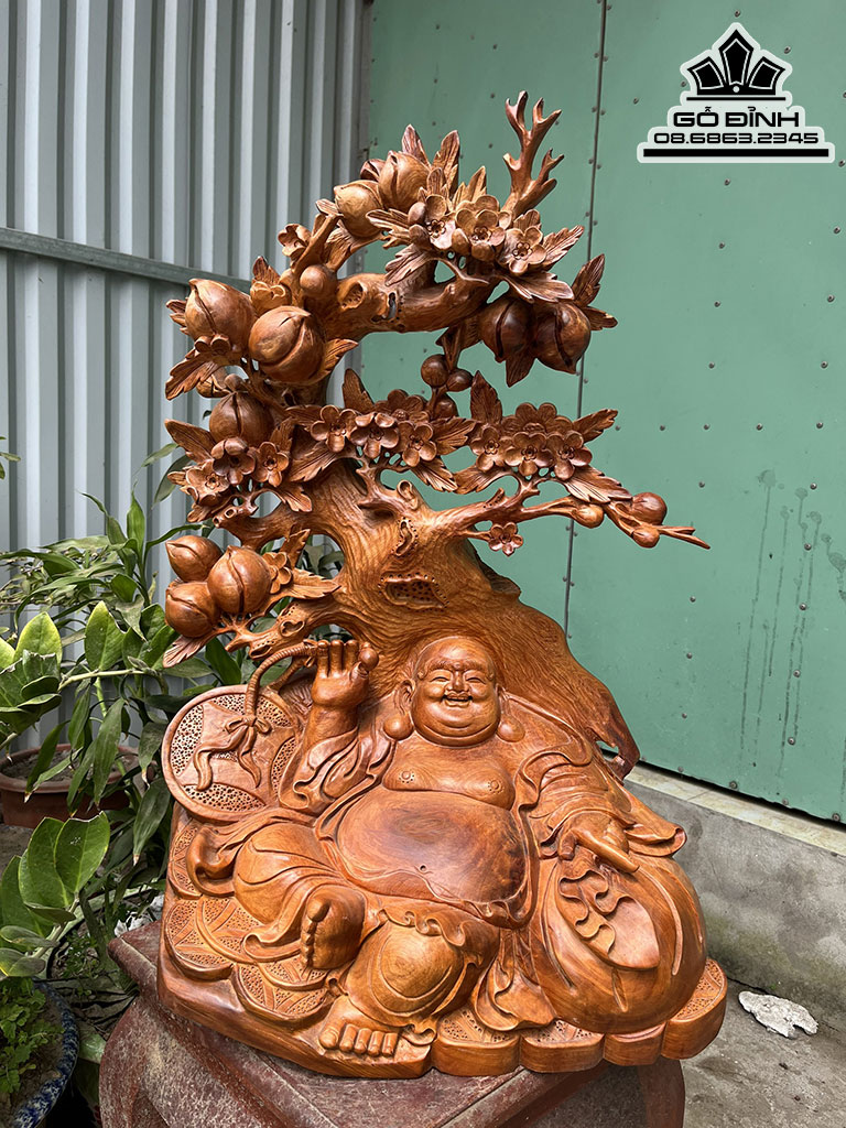 Di Lặc Ngồi Gốc Đào Gỗ Hương Cao 72 Ngang 45 Sâu 38 (cm)