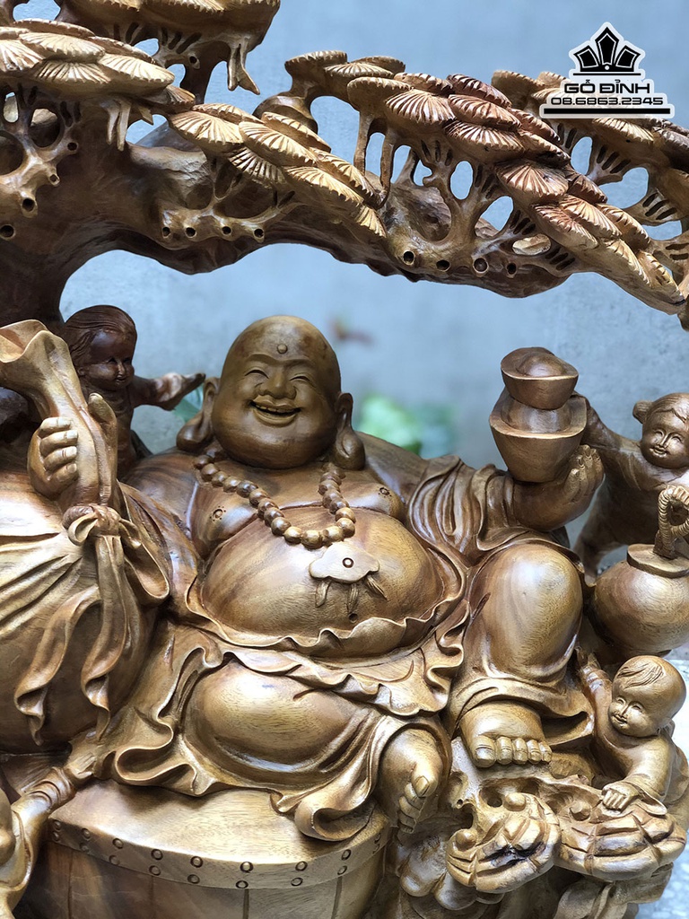 Di Lặc Ngồi Gốc Tùng Gỗ Xá Xị Cao 52 Ngang 60 Sâu 32 (cm)
