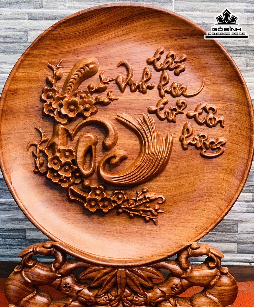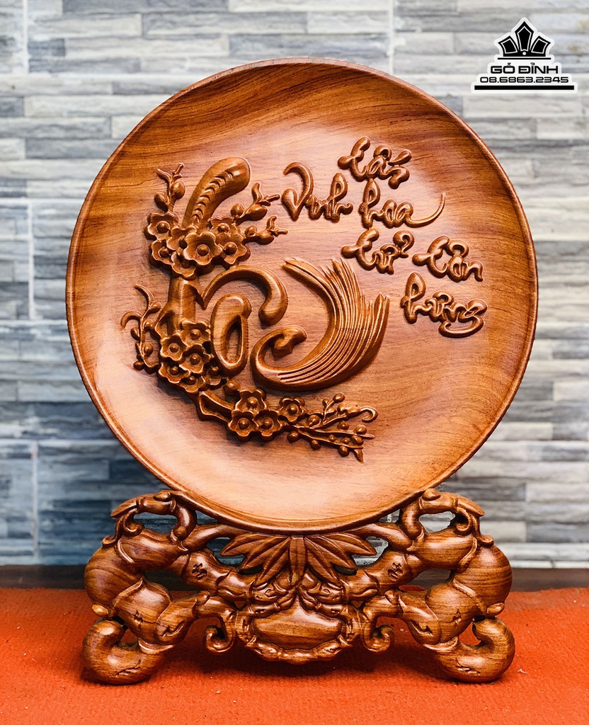 Đĩa Chữ Lộc Gỗ Hương Đá Cao 40 Đường Kính 30 (cm)