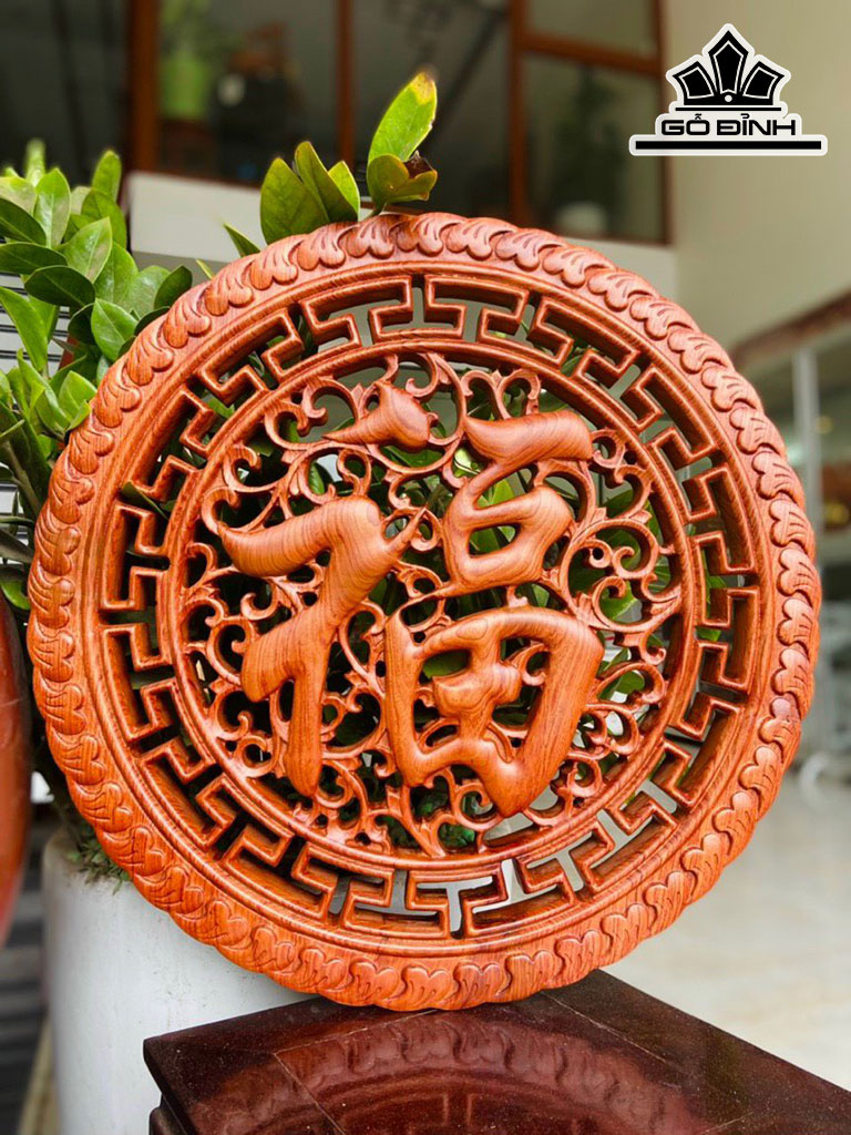 Đĩa Chữ Phúc Gỗ Hương Cao 3 Đường Kính 50 (cm)