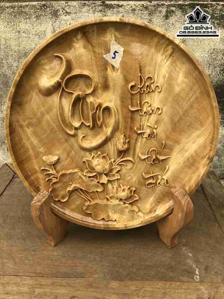 Đĩa Chữ Tâm Gỗ Nu Nghiến Đường Kính 28 Dày 2 (cm)