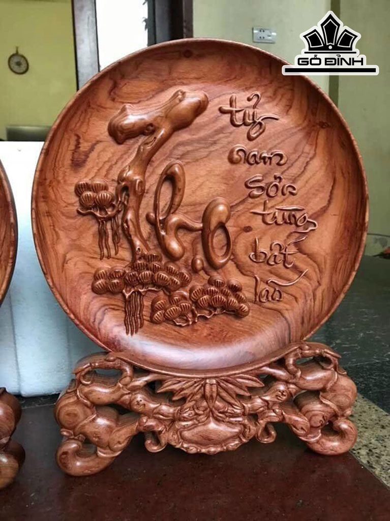 Đĩa Gỗ Chữ Thọ Gỗ Hương Cao 40