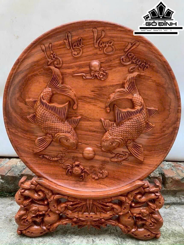 Đĩa Gỗ Lý Ngư Vọng Nguyệt Gỗ Hương Cao 40 Đường Kính 30 (cm)