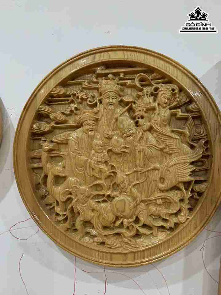 Đĩa Tam Đa Phúc Lộc Thọ Nguyên Khối Gỗ Pơ Mu Đường Kính 50 Dày 40 (cm)