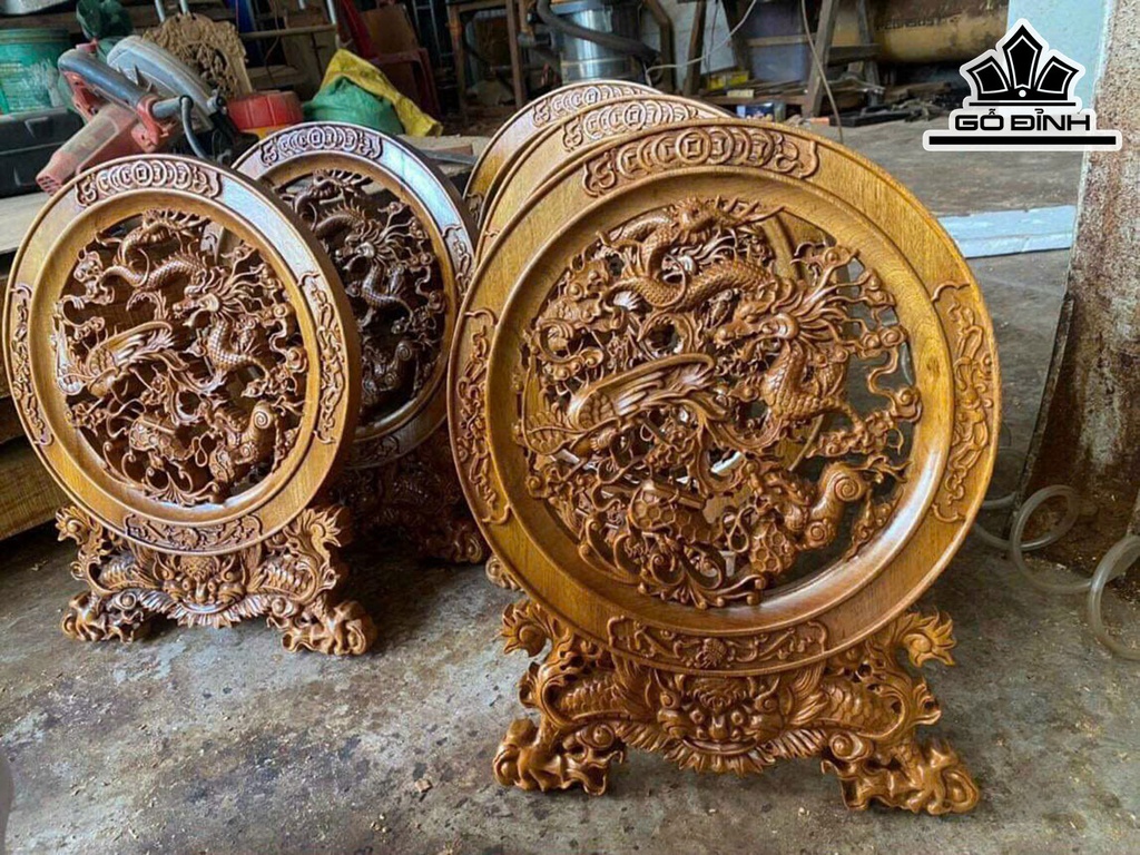 Đĩa Tứ Linh Gỗ Gụ Cao 45 Đường Kính 35 (cm)