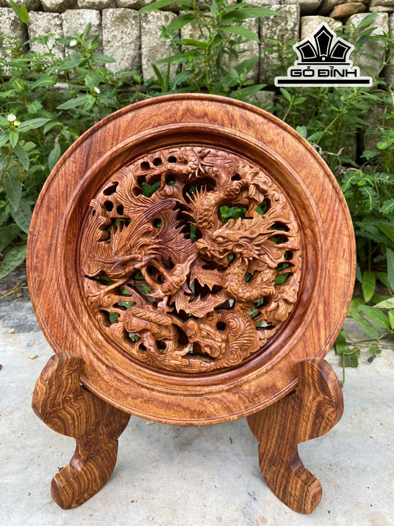 Đĩa Tứ Linh Gỗ Hương Cao 32 Đường Kính 25 (cm)