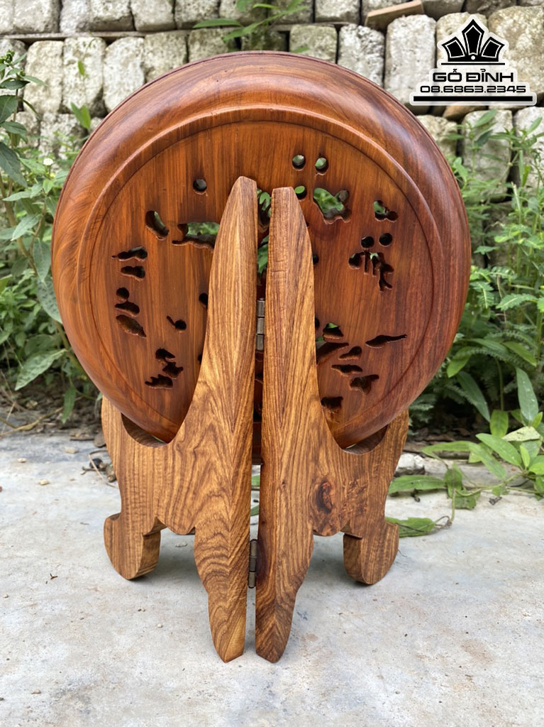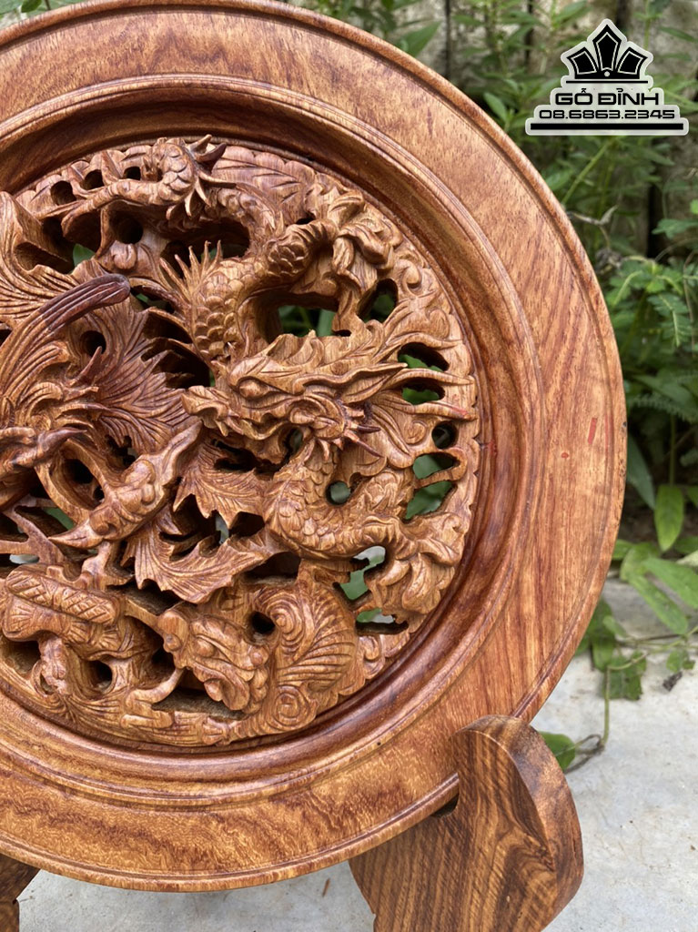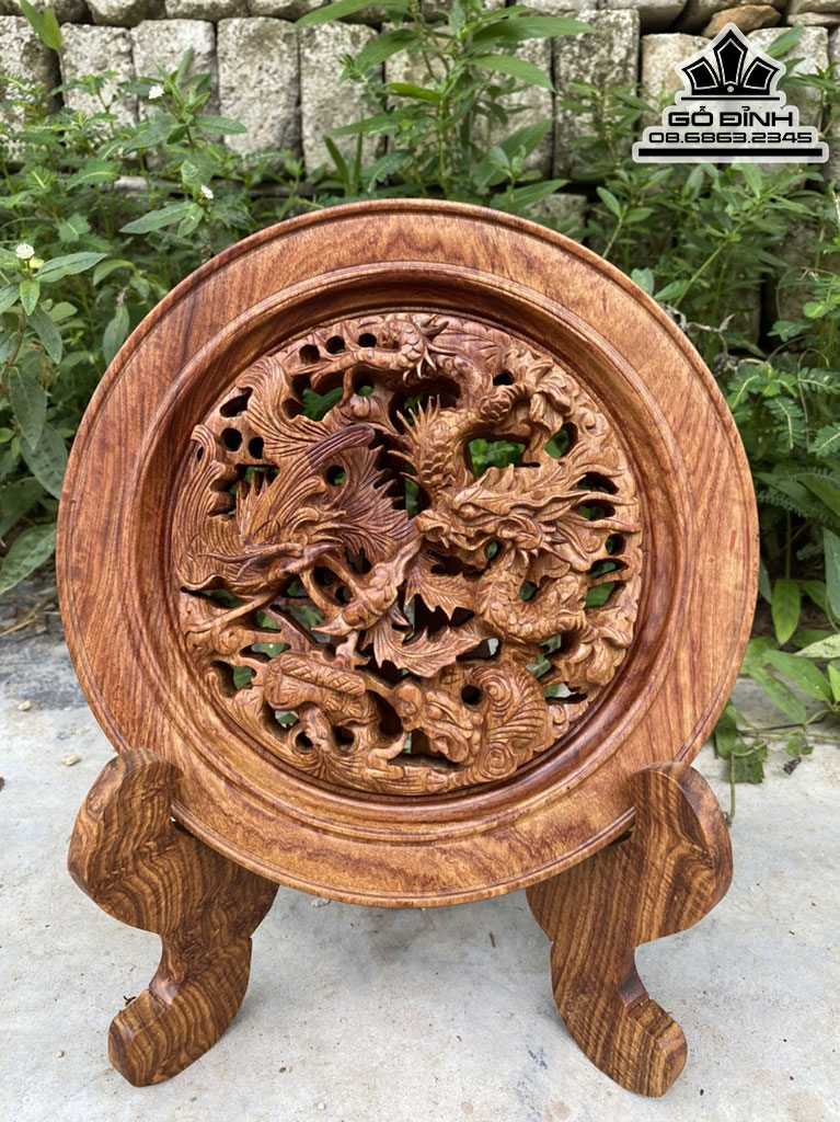 Đĩa Tứ Linh Gỗ Hương Việt Cao 32 Đường Kính 25 Sâu 4 (cm)