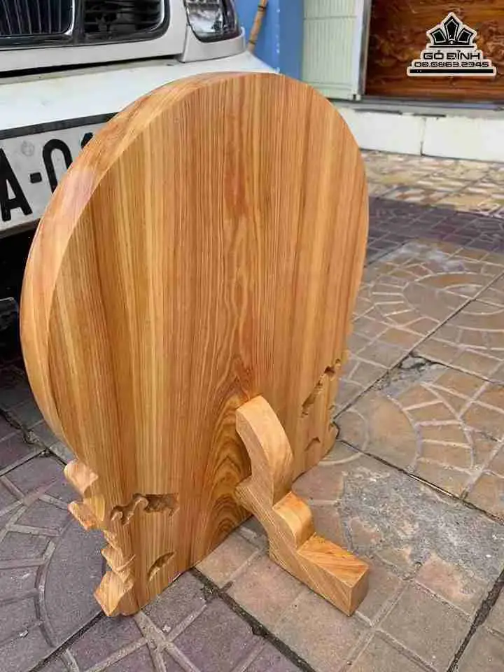 Đĩa Tứ Linh Gỗ Pơ Mu Nguyên Đường Kính 60 Cao 75 (cm)