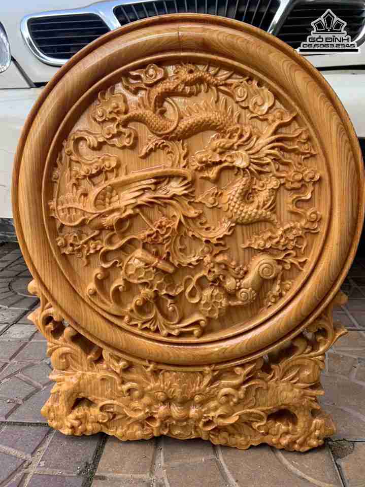 Đĩa Tứ Linh Gỗ Pơ Mu Nguyên Đường Kính 60 Cao 75 (cm)