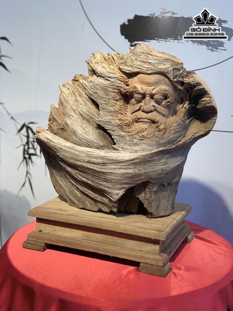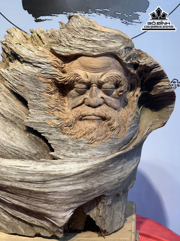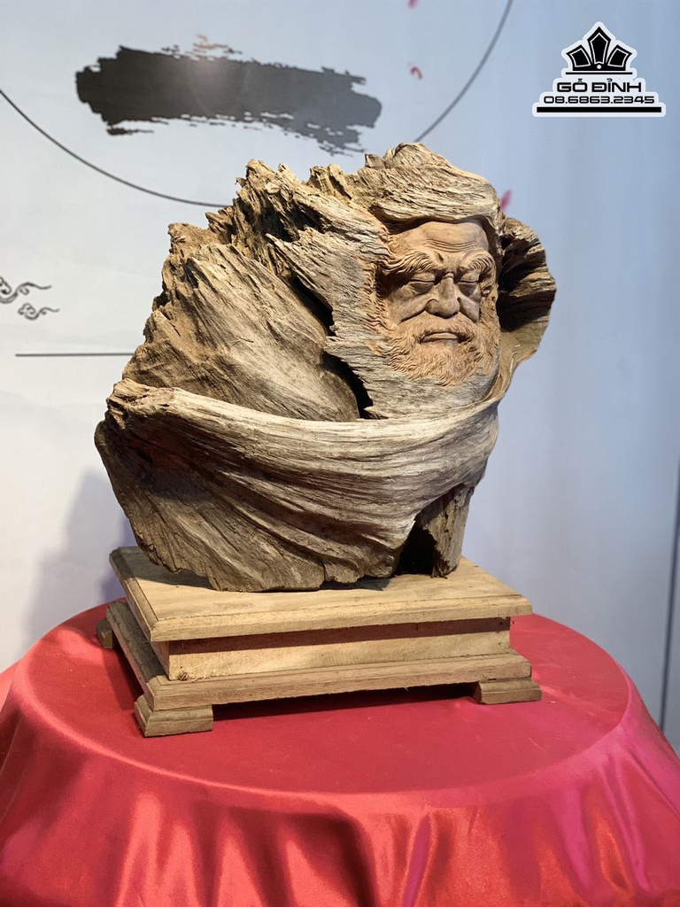 Diện Đạt Ma Sư Tổ Gỗ Ngọc Am Cao 40 Ngang 38 Sâu 23 (cm)